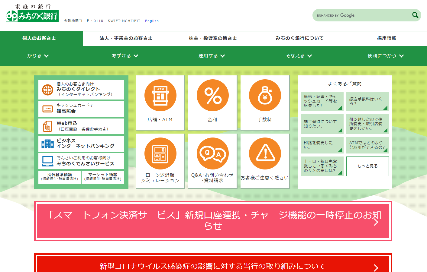 | よくある質問 | https://www.michinokubank.co.jp/qa/ |